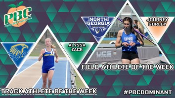 2021 Women's Track & Field Weekly Awards April 20 Track - Alyssa Zack, Embry-Riddle Field - Journey Gurley, North Georgia April 13 Track - Quanterra Harrison, UNC Pembroke Field - Ar'ronne Hickson, Columbus State April 6 Track - Ukeyvia Beckwith, Embry-Riddle Field - Ta'Leah Adams, Embry-Riddle March 30 Track - Quanterra Harrison, UNC Pembroke Field - Journey Gurley, North Georgia March 23 Track - Alli Hay, Columbus State Field - Shania Riles, Clayton State March 16 Track - Na'ilah Allen, Clayton State Field - Ny'Asia Green, Clayton State March 9 Track - Abigail Kirkland, North Georgia Field - Journey Gurley, North Georgia